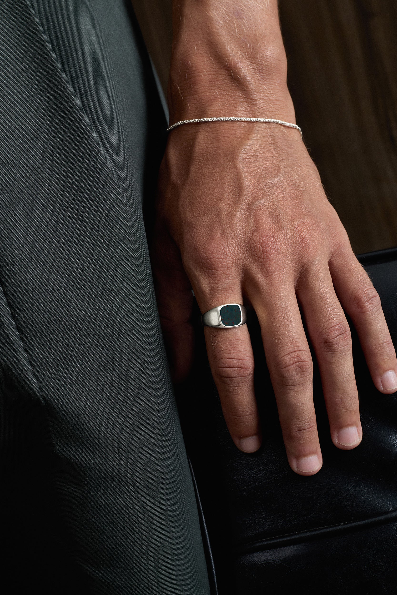 Thick rings, such as our classic signet rings, normally require you to choose a larger size than slim band rings, which do not build as much on your finger.