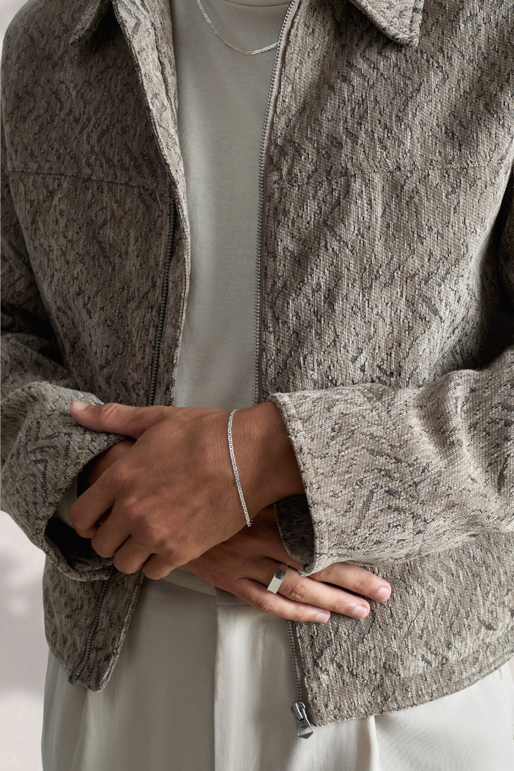 Taking inspiration from nautical heritage, the Mariner’s interlocking links sit flat and clean on the wrist. Substantial in feel—grounded, comfortable. Solo or stacked, it stays steady.